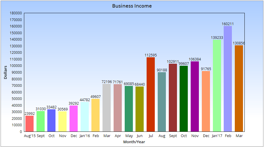 I earned $130,856.35 blogging and online in March of 2017, before expenses.