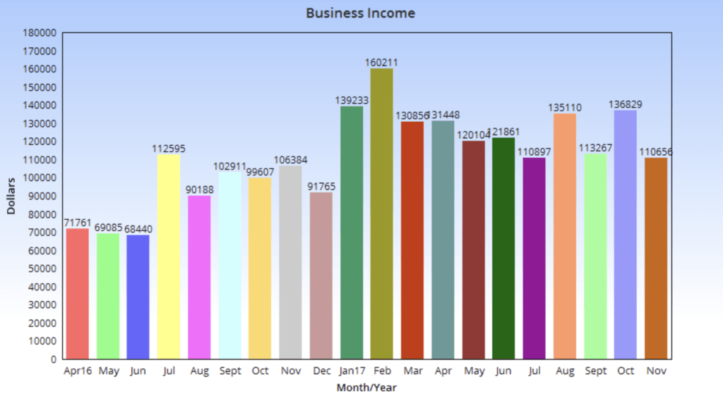 How was business income in November of 2017?