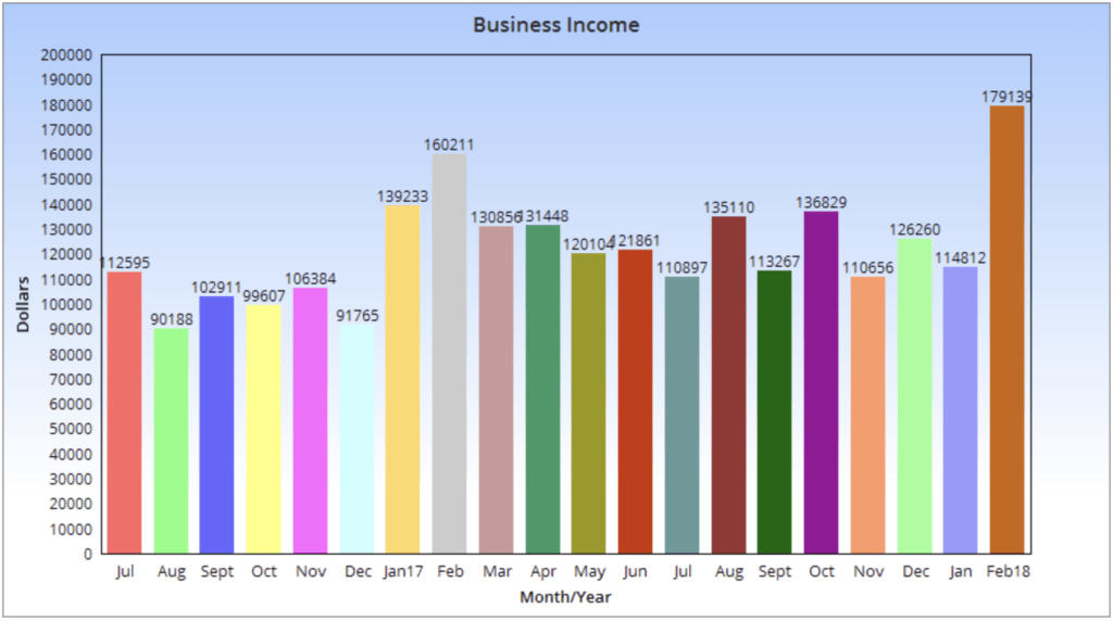 • Total income in February of 2018: $179,139