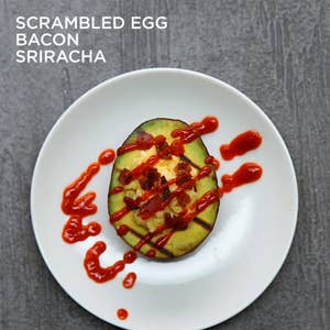 Scrambled Eggs, Bacon, And Sriracha–stuffed Avocado